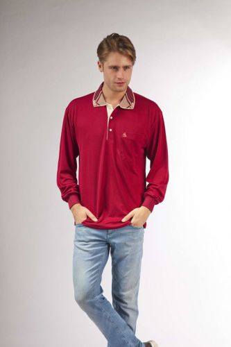 吸濕排汗長袖POLO衫(暗紅色)-吸濕排汗原紗