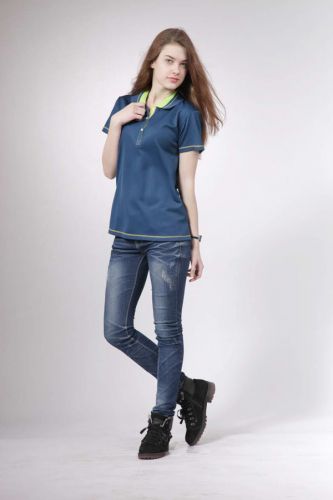 吸濕排汗短袖POLO衫 (灰藍色)-吸濕排汗原紗