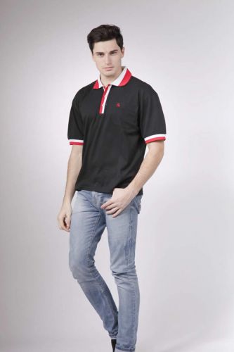 快乾棉排汗短袖POLO衫(黑色/紅色)-吸濕排汗原紗