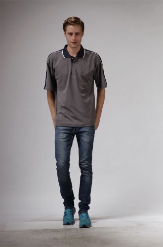 CVC排汗短袖POLO衫(灰色)-吸濕排汗原紗