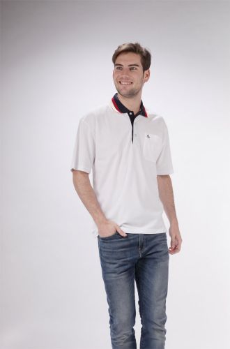 棉+排汗短袖POLO衫 (白色)-吸濕排汗原紗