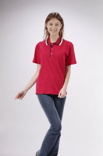 快乾棉排汗短袖POLO衫(紅色/灰色)-吸濕排汗原紗