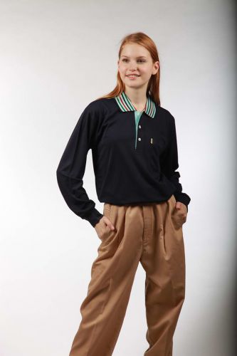 吸濕排汗長袖POLO衫(丈青色)-吸濕排汗原紗