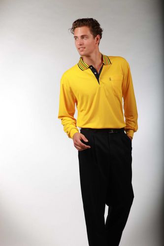 吸濕排汗長袖POLO衫(黃色)-吸濕排汗原紗