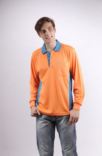 吸濕排汗長袖POLO衫(橘色)-吸濕排汗原紗