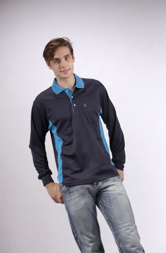 吸濕排汗長袖POLO衫(丈青色)-吸濕排汗原紗