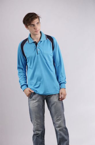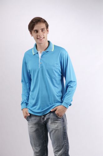 吸濕排汗長袖POLO衫(湖水藍)-吸濕排汗原紗