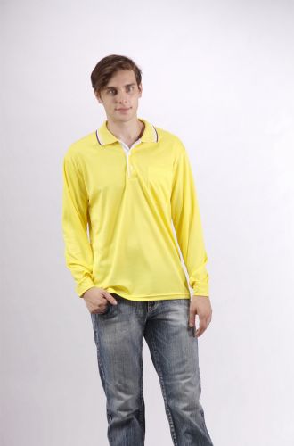 吸濕排汗長袖POLO衫(黃色)-吸濕排汗原紗