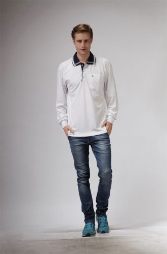 吸濕排汗長袖POLO衫(白色)-吸濕排汗原紗