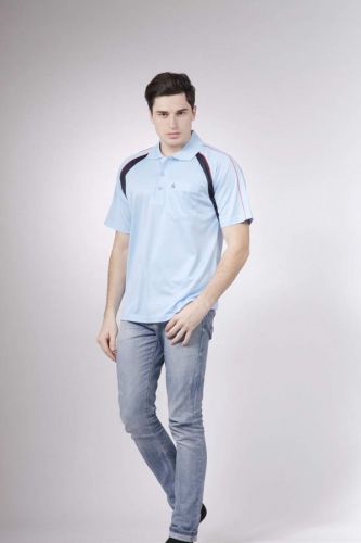 吸濕排汗短袖POLO衫 (水藍色)-吸濕排汗原紗