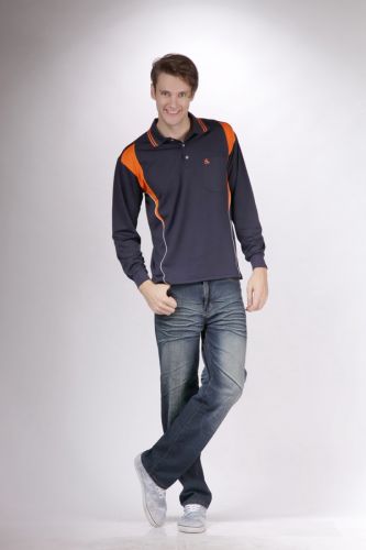 吸濕排汗長袖POLO衫(丈青/橘色)-吸濕排汗原紗